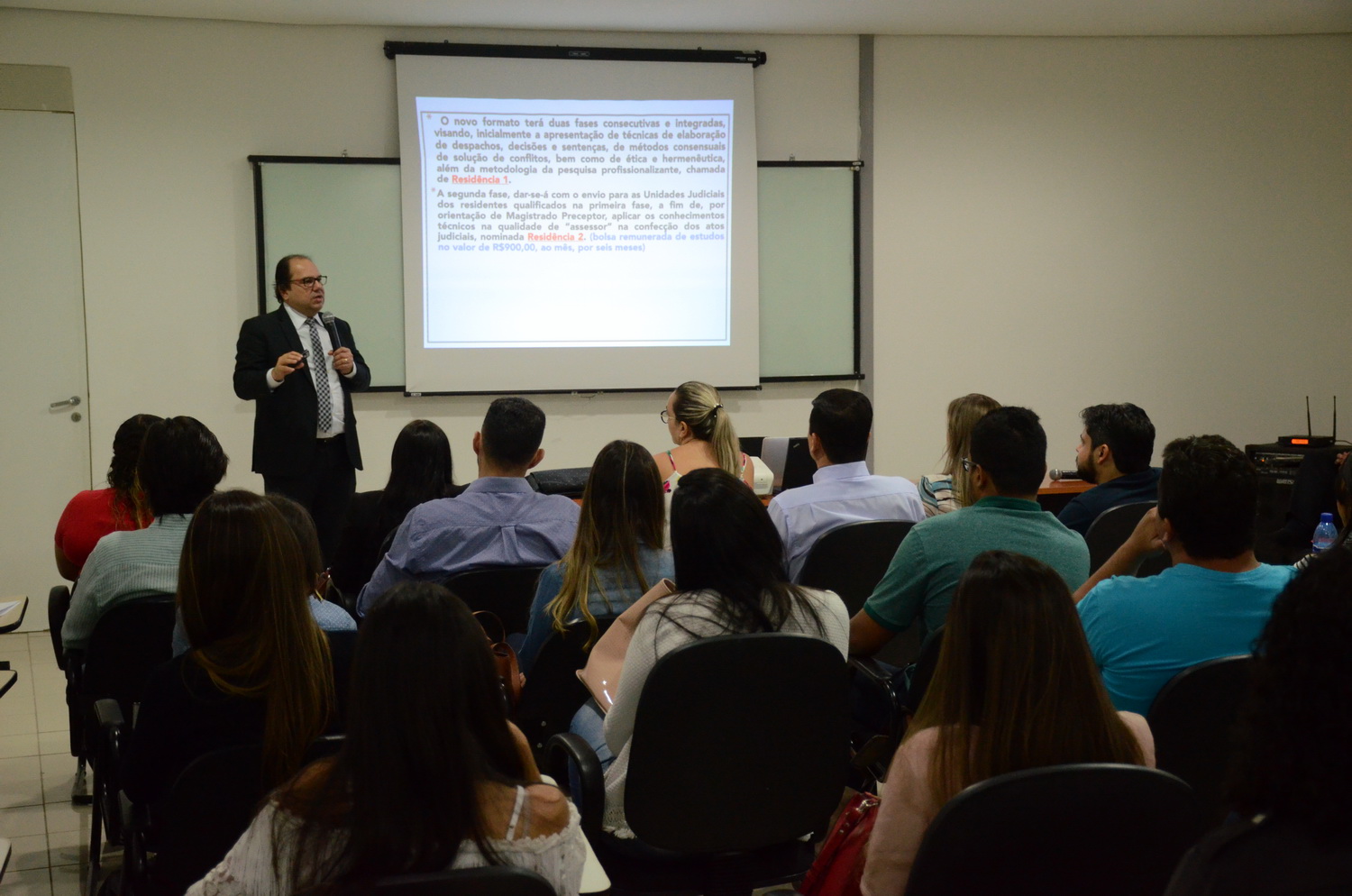 O diretor adjunto da Escola, juiz Eduardo Carvalho, fez a apresentação aos estudantes da nova metodologia da formação. Ele, na ocasião, parabenizou o desembargador pela coragem extraordinária em buscar o interesse dos alunos e de atualizar o formato metodológico do curso. “A Esma será a segunda Escola da Magistratura no País a instalar a residência judicial”, enfatizou.